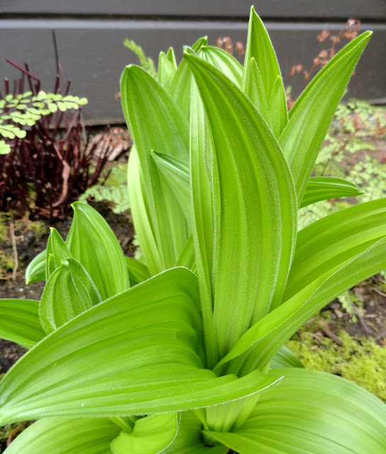 Not wanting to end up all Foliage Follow-up Debbie-downer on you I found a couple of things from my garden to share. First of all it just doesn't get any better than this for new spring foliage, Veratrum Californicum.