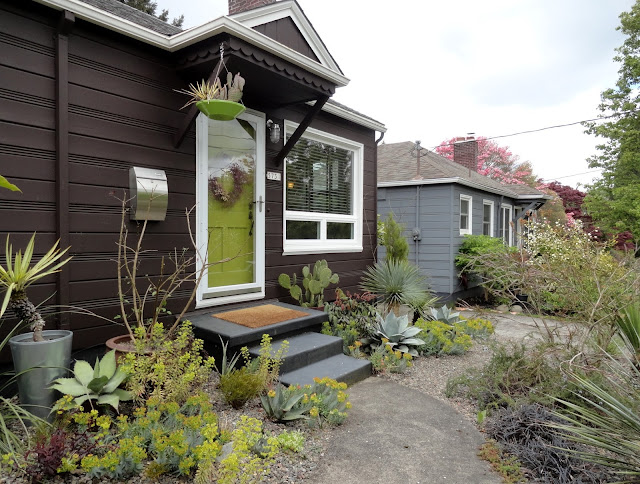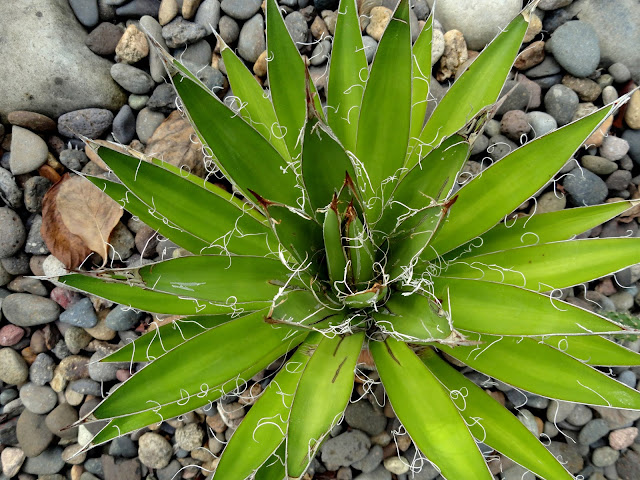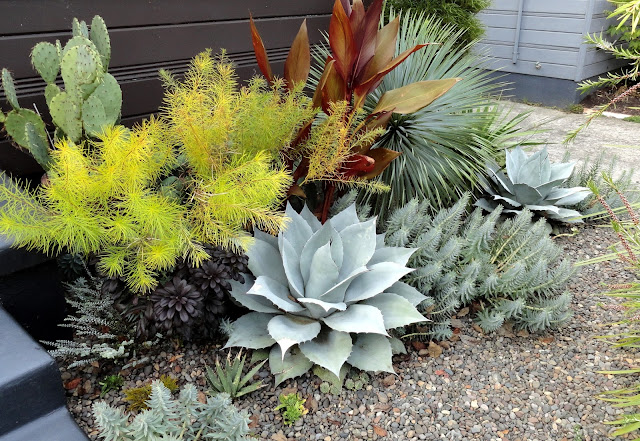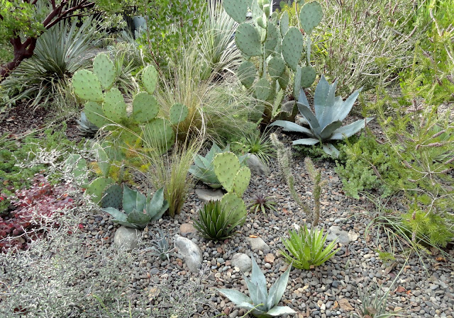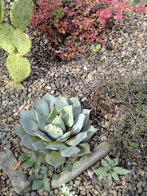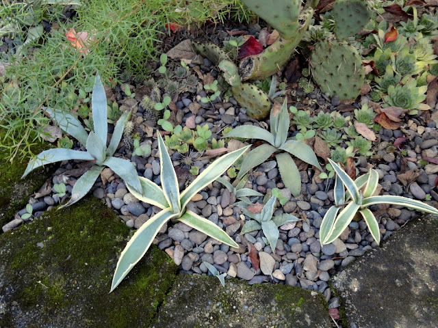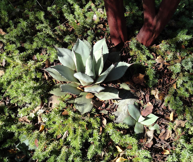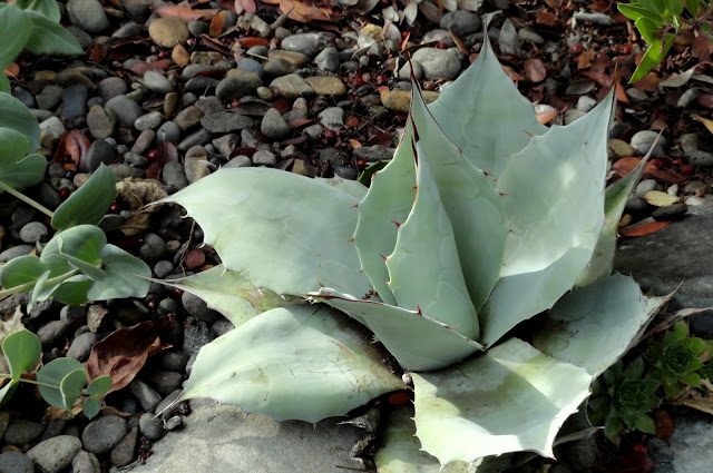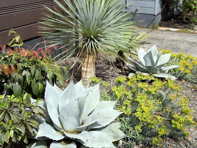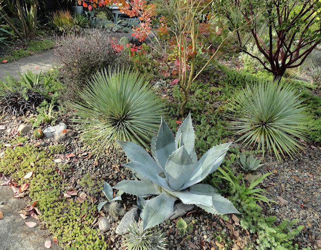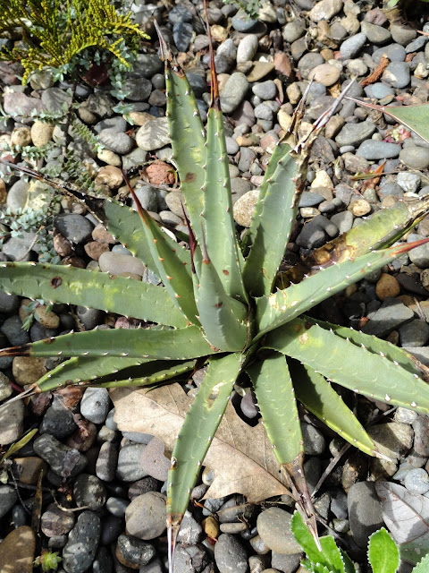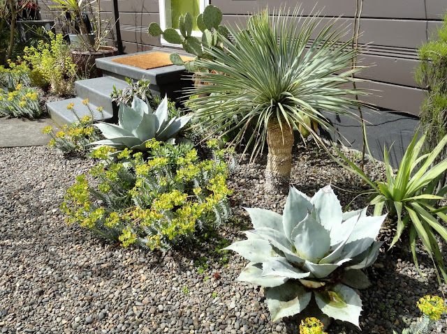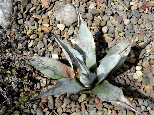 I guess I'd better get on with it...like a good blogger I took photos (on April 27th) but then still couldn't quite decide how to go about sharing them. How to compare the "now" with what was before? Finally I decided to cut my previous Agave report, filed on Nov 1, 2016, in with the current reality. It makes for a long post so I'm separating the front garden (today's post) and the back garden, which we'll see tomorrow.