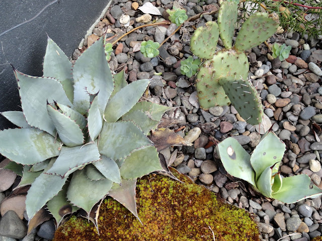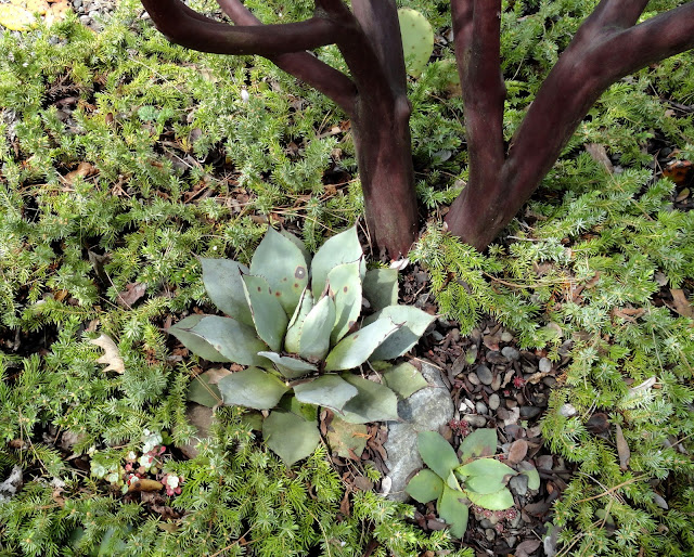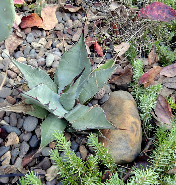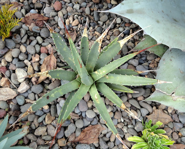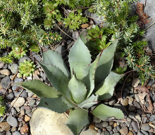 Here's the first of several Agave parryi 'JC Raulston'— and pups — then. I've previously joked about these Agaves being made of plastic, becasue they never show any signs of stress.