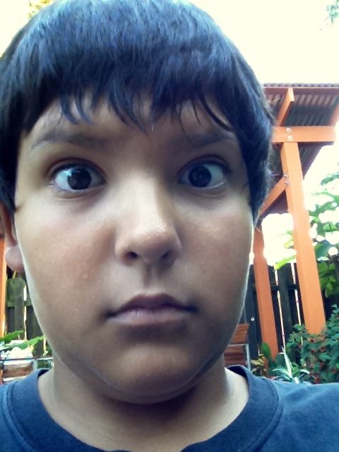 Fast forward to August of 2011 when he came to visit us in Portland. He was 12 but for all intents and purposes a teenager. Electronic devices figured large in his mind. My iPad was his while he was here. It wasn't until after he left that I found these pictures he took using it, while we were on the patio one afternoon. Goofy eyes!
