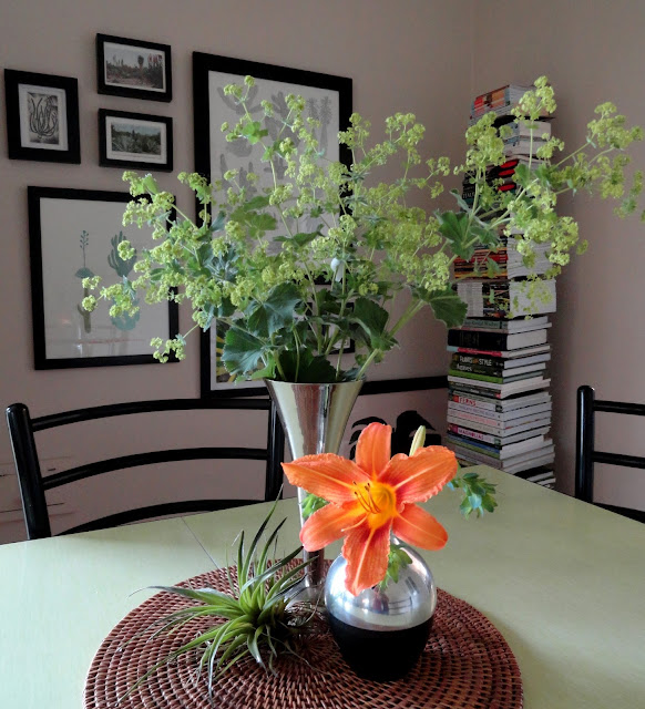 Am I starting a new meme? No...just feeling a little sentimental after spending the weekend in Spokane for my nephew Trent's high school graduation. I had every intention of doing a "In a Vase" post today but life got busy and all I managed to throw in a vase were some Alchemilla mollis, aka lady's mantle stems, and a broken Daylily stem along with a couple pieces of Cerinthe major purpurascens — which look great by the way, but hardy seemed post worthy.