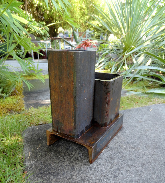 So, upon first walking into the show, and gardens, I spied the work of Indio Metal Arts. There were a few pieces I really liked, being more container than "Art"— and the price was within my realm of doable. I played the time-worn game of "if it's still there when I go back"...and it was!