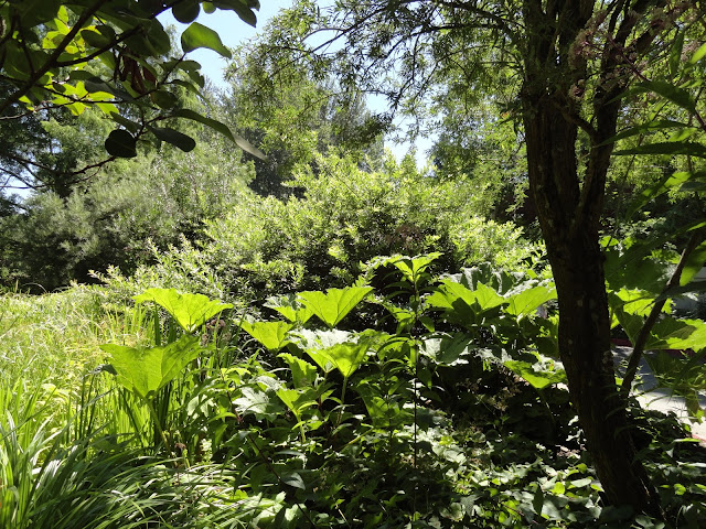 I remember Andrew standing in front of this Gunnera, on a past visit, and being dwarfed, all 6-ft 2-inches of him. It's not quite that tall this year.