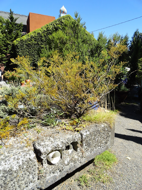 Last Tuesday (August 1), as the temperature crept up toward the century mark, it was time for the annual Cracked Pots Art Show at McMenamins Edgefield. While I am no fan of "Art" in the garden I do support the idea behind Cracked Pots: "Crackedpots is a volunteer driven non-profit devoted to waste reduction in our community. Creative reuse - reclaiming and reimagining - is at the heart of all we do." The ReClaim It! store I wrote about last week (here) is the retail marketplace for the Cracked Pots organization.