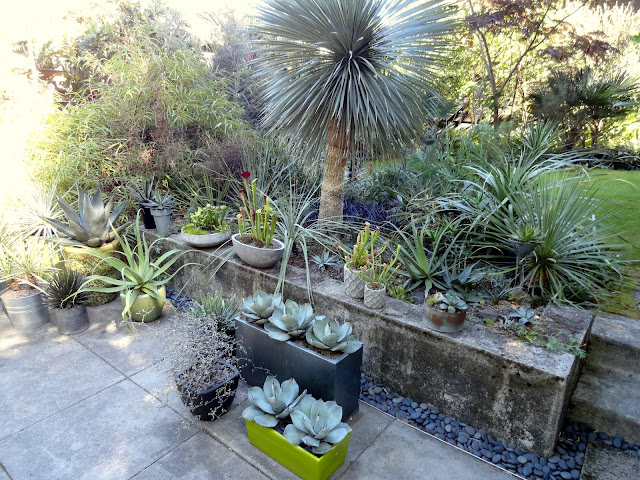 And now here are things at the end of day two, after two more hours of work for a total of six. I'm rather amazed at the size this Agave desmettiana 'Variegata', and to think it used to set on my desk at work!