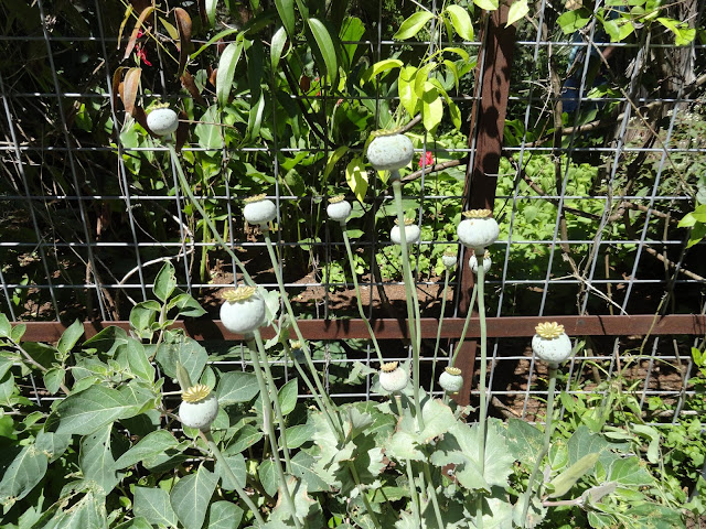 This is the first photo I took during our stop at Margie McClurg's garden. If my memory is correct there was a bit of a back-up of bloggers filing in through the main gate, so I detoured around the perimeter while the crowd dispersed. I can't remember if it was her fence or a neighbor's, but it's very good looking...