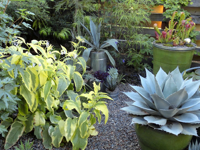 Those curly filaments on the Yucca make everything look good, I love them with the Agave spikes (oh! that's skipping head...we'll get to the Agave in just a moment).