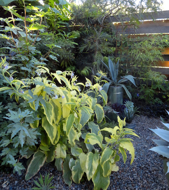Tucked in behind the Grevillea is a double headed Echium Wildpretti that's actually in a container. I've planted so many of these (all seedlings dug from a friend's garden) in both the front and back gardens this year. I decided to containerize this pair as insurance, just in case it's a bad winter, that way I've got them ready to go next year.