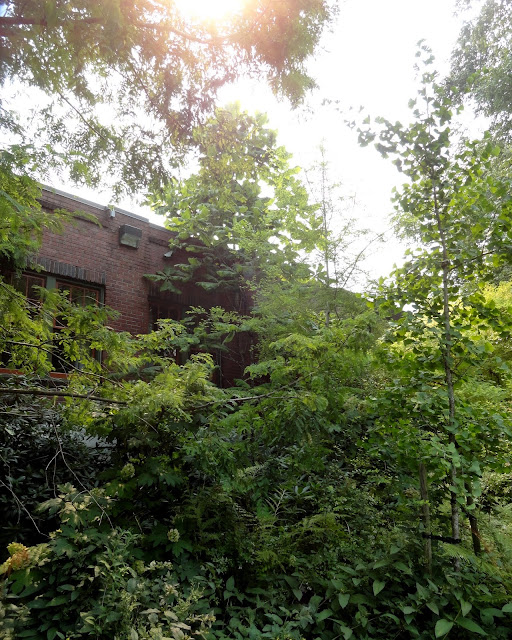 One of the very first Magnolia macrophylla I ever saw (in the middle, up against, but taller than, the building). I like to visit it to remind myself just how tall Clifford can get.