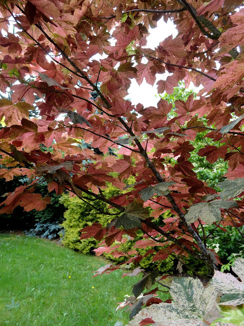 Based on an ID from my friend Peter's blog post on Heronswood I think this is an Acer pseudoplatanus 'Esk Sunset.'