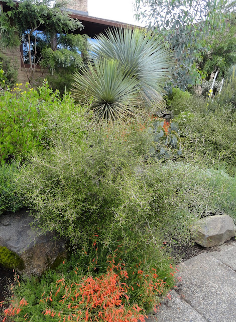 I believe the tree at the back is a Sophora of some sort, but the yucca, agave, callistemon is repeated throughout my front garden. Maybe more of the same?