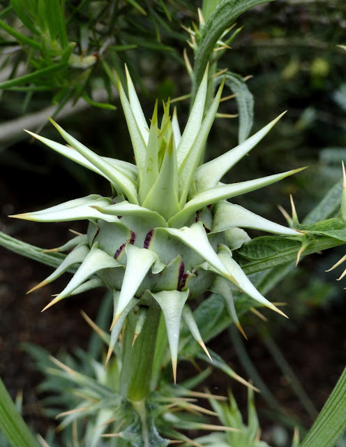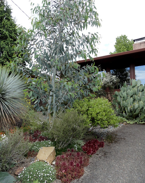 In the hell-strip...this has to be the most unfriendly sidewalk plant ever, I love that.