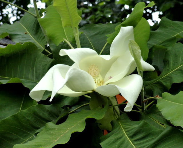 The Magnolia macrophylla has had more flowers on it this year than ever before. They've also lasted a long long time. Here's a bud...