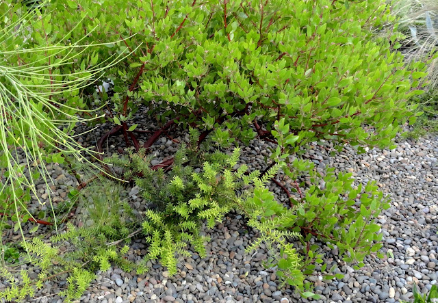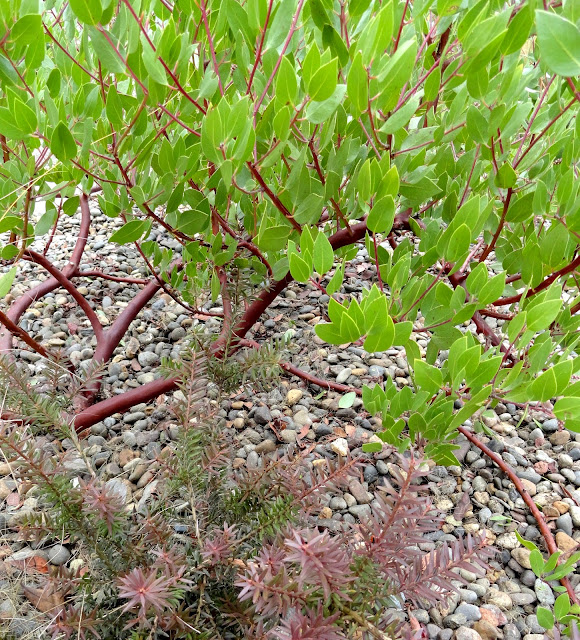 It has been shown here on the blog a couple of times before, most recently after I’d trimmed the Arcto and was excited you could see this color combo (which was why I planted it there in the first place), photo taken in early March of this year when the foliage was still wearing it's winter colors...