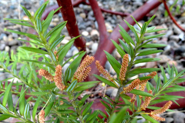 I bought this one at Xera Plants a couple of years ago, and it’s no longer in production. Podocarpus alpinus 'Red Tip' and Podocarpus alpinus 'County Park Fire' seem to be good substitutes. Meanwhile here’s the description from the Xera tag: “Intense dark maroon foliage is handsome in winter and even more striking when new growth emerges orange for a bicolor effect. An evergreen shrub that is wonderful as a specimen or hedge. Moderate growth to 8’ tall and 6’ wide in 5 years. Full sun to light shade in a well drained soil with occasional deep watering in summer. Established plants tolerate drought. Plant 4’ apart for a hedge. Excellent appearance year round. Hardy to Zn 7a (0 – 5F)”