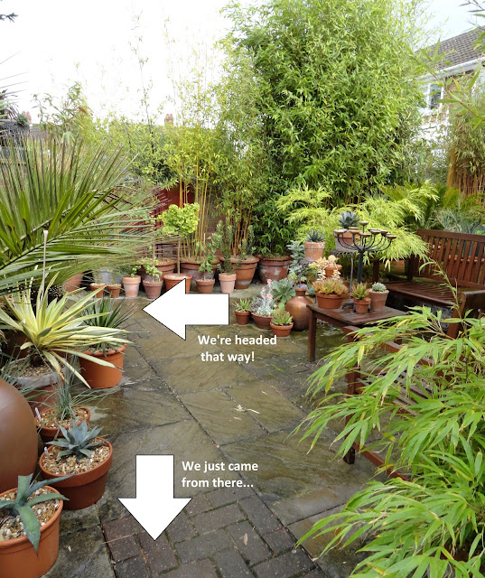 Yesterday we visited the densely planted jungle that is the garden of Mark and Gaz. Today we leave the jungle and step out into a more arid landscape. It’s the transition between these two spaces that I could never completely understand. In case you've felt the same (or this is your first time seeing their garden) took a photo from yesterdays post to help…
