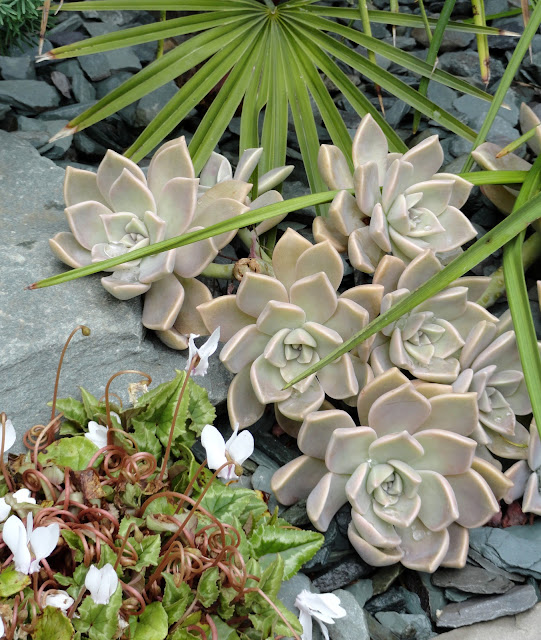 Every gardener has a ‘plant maintenance facility’ (or plants in waiting) theirs is beyond the pond and filtration house area. There was a Saxifraga longifolia (I believe)...
