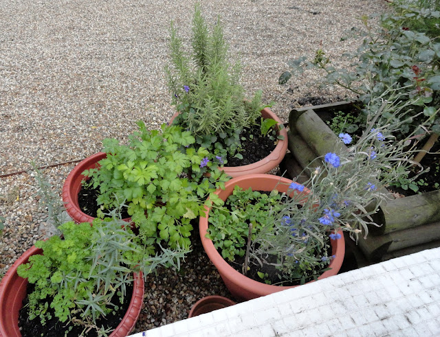 Must be concrete under all that gravel or else they would have planted in the ground. Or maybe this area is still sometimes used for cars. You can see the shadow of tire prints in the gravel. So why all the gravel?