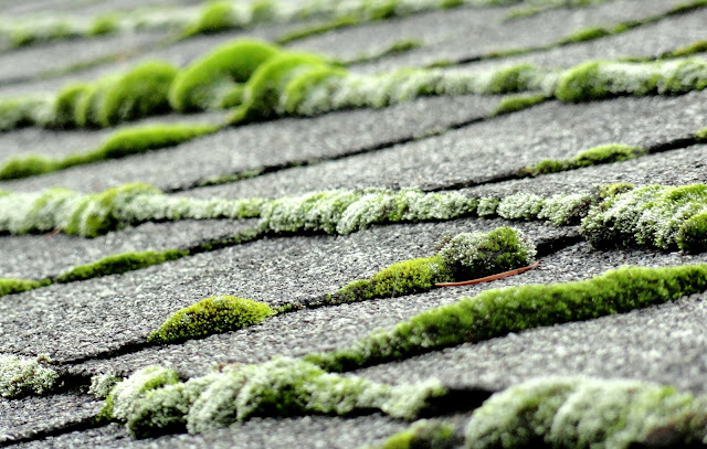 Inspired by Alan at It’s Not Work Its Gardening, who took advantage of gutter cleaning day to snap some photos of his garden from above, I handed the camera to Andrew when he was up on the ladder taking care of our gutters. This was actually the first photo he snapped, of the sedum growing on our fireplace. I still wish I knew how it got there.
