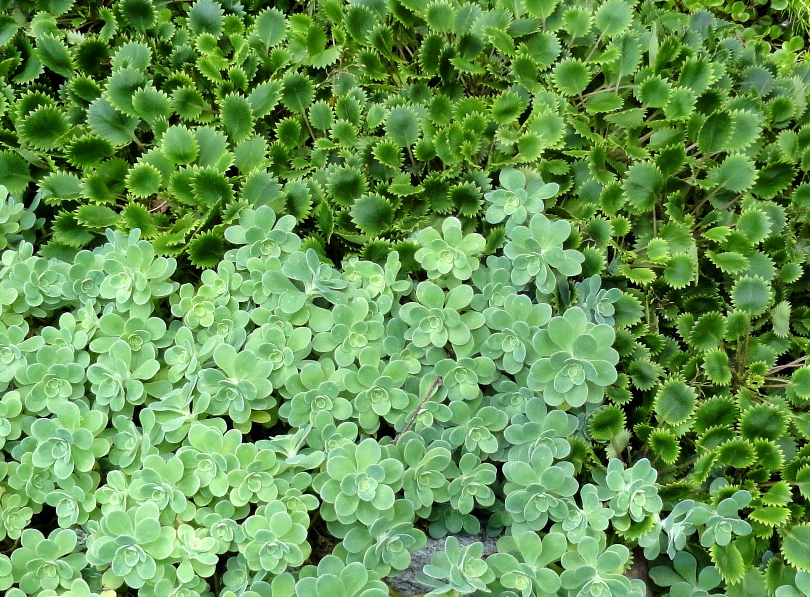 This is my favorite idea to steal from this garden. Sedum rupestre 'Angelina' and Ajuga reptans 'Black Scallop' massed together, love it!