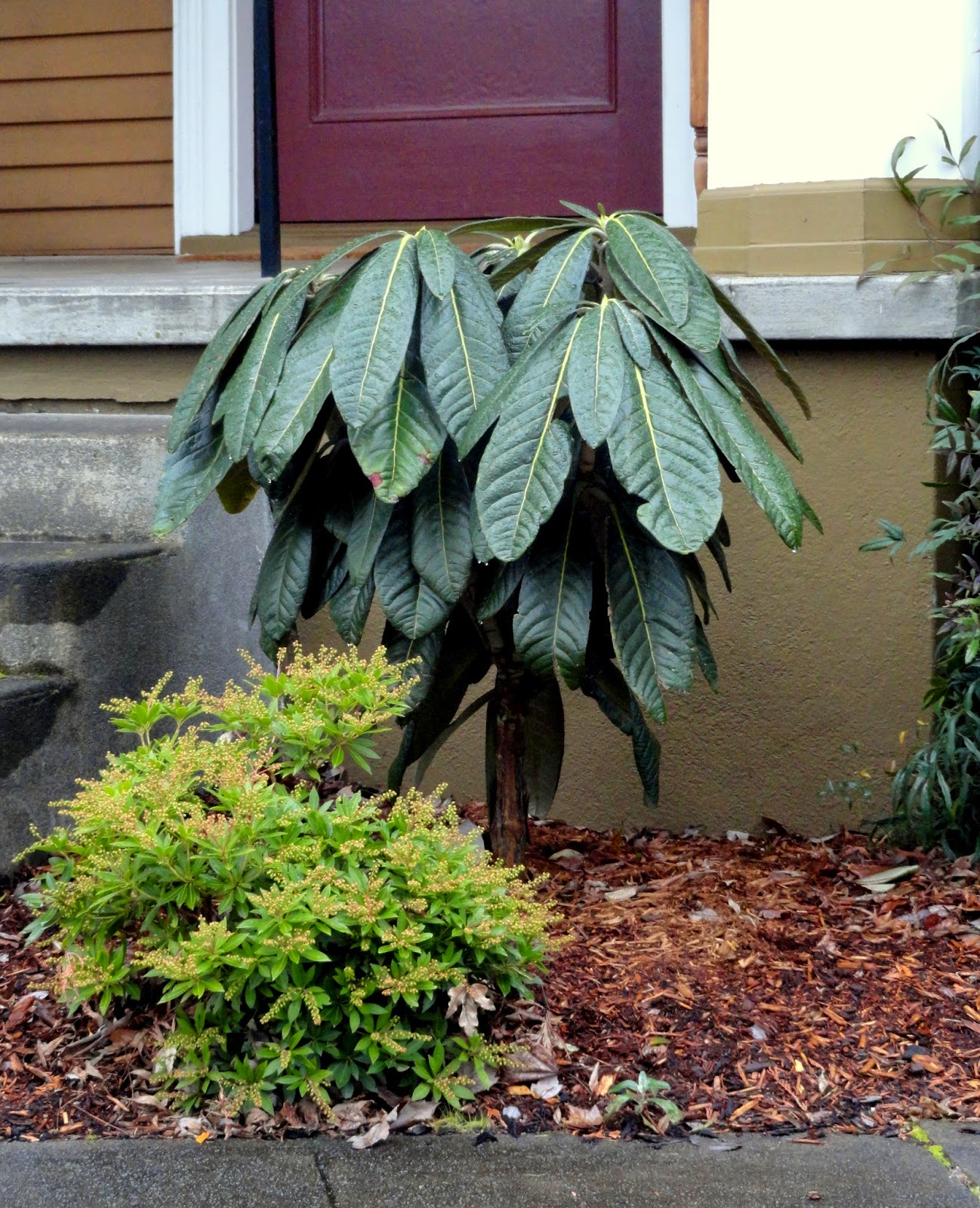 Rhododendron sinogrande flanking the front steps, fun!