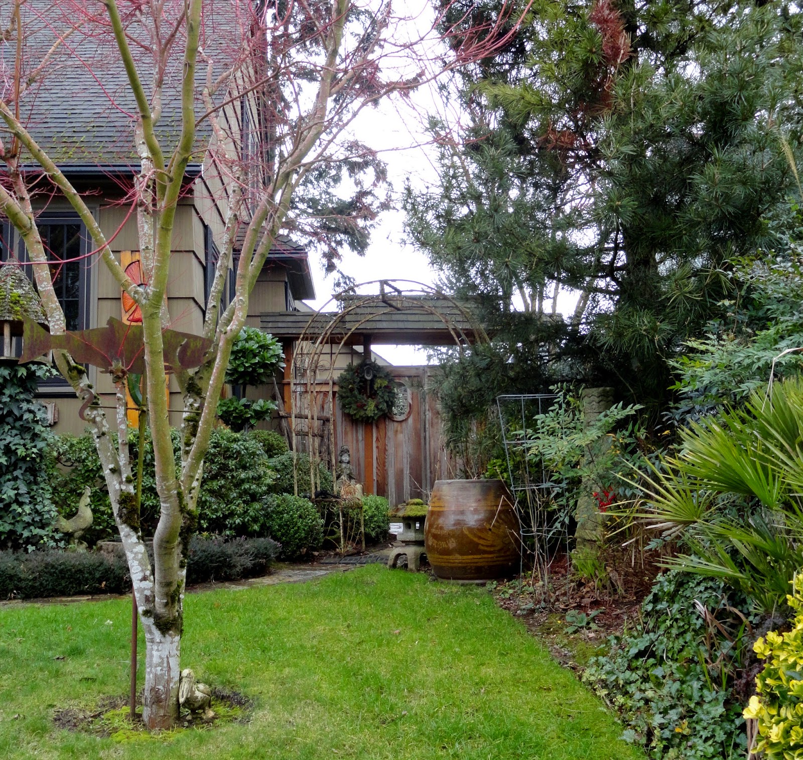 I love the tawny hakonechloa in place, I bet it looks pretty fabulous when it's green as well.