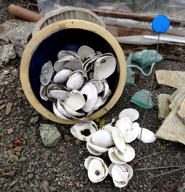 Plants selected and stowed away (more on my haul at the end) it was time to walk up to the house, which now goes by the name Villa Catalana. When I first ventured here back in 2006 I believe the house was still under construction. I could be wrong, those were pre-blog days. The first documented images I have are from 2009. These shells got me wondering what Burl (owner, laborer, visionary, dreamer behind Rare Plant Research and Villa Catalana) had in mind when he gathered them. This is a man who is constantly creating.