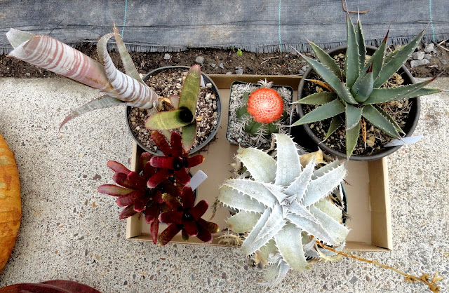 My haul! On the far left a couple of bromeliads, bound for my chartreuse Circle Pot. A Melocactus acipinosus, because how could I say no to that orange cap? An Agave utahensis (I'm going to try it in the ground) and a Dyckia marnier lapostollei, just because it's so beautiful. And with that, I start dreaming of next year...