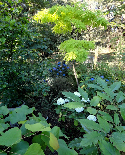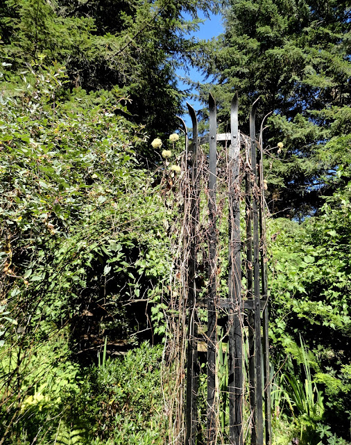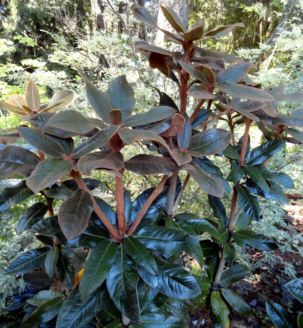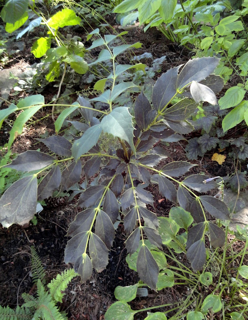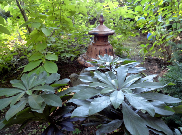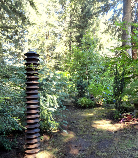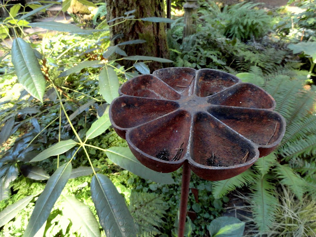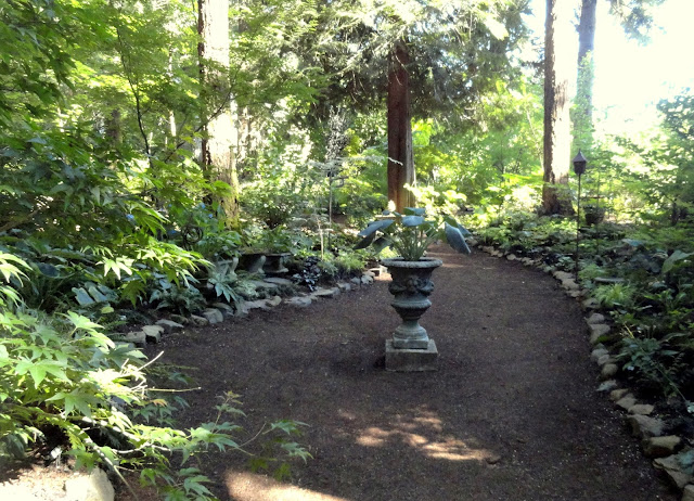 This garden has a split personality. Today we visit the old growth sections. Plantings getting by in the shadow of tall Fir trees. Tomorrow's post will be entirely different. If I wasn't here to tell you they were the same garden I bet you'd never know.