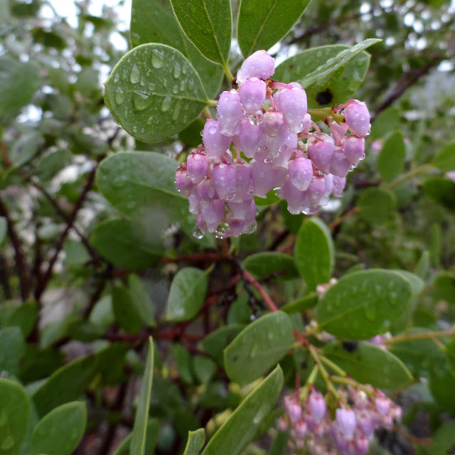 All of my Manzanita are loaded with flower buds. Arctostaphylos x 'Austin Griffiths' is the only one that's burst into bloom.
