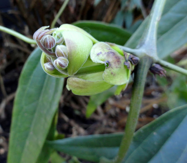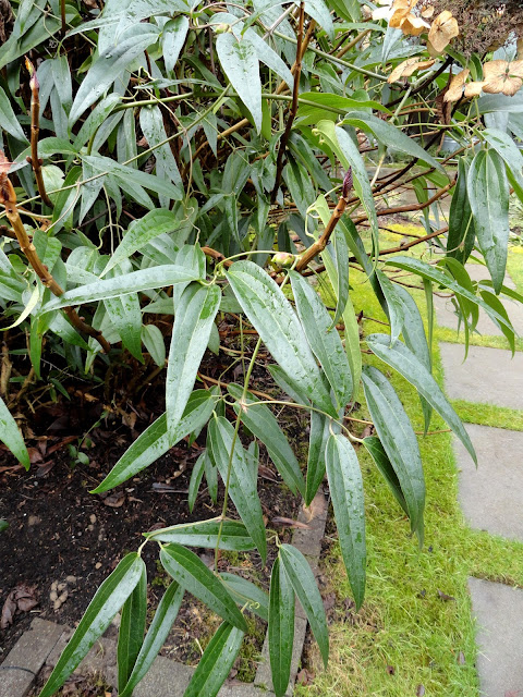 The hydrangea had always been a wintertime eyesore so a few years ago I had the brilliant idea to grow an evergreen vine through it, Clematis armandii ‘Snowdrift.’ After several years of struggling it’s finally taken off. Now I realize this photo doesn't make it look like that was a terrific idea but normally I would have woven the vine back around the hydrangea once its leaves fell and things would be looking good. Anyway this brings me to the problem at hand. What do I do with the clematis?