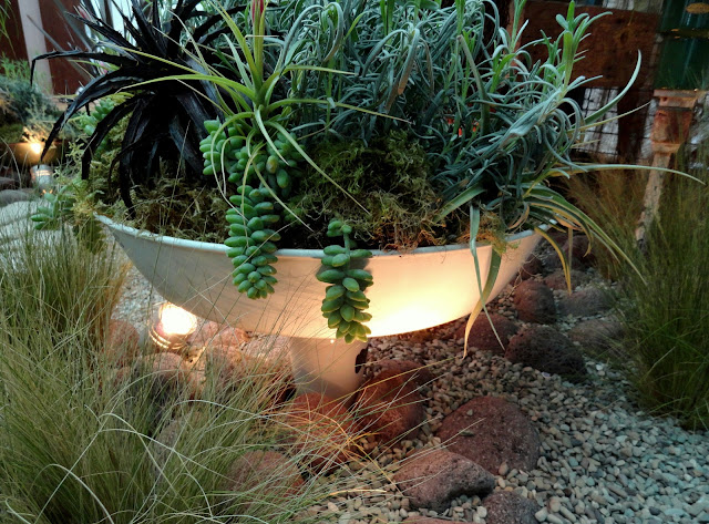 Seriously though while I have no idea what that was all about I can say (for the most part) the real small space gardens didn't disappoint…there was so much color and attention to detail! My friend Peter (The Outlaw Gardener) said he could picture me composing blog posts here…