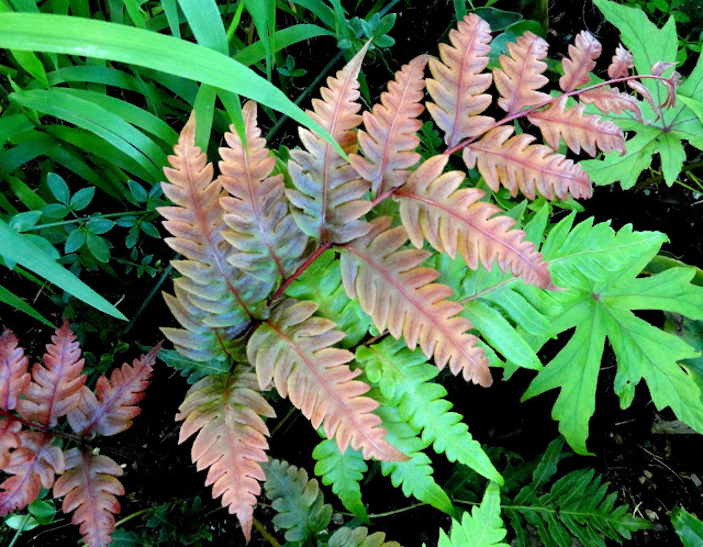 And while Podophyllum 'Red Panda' is a little less red now...