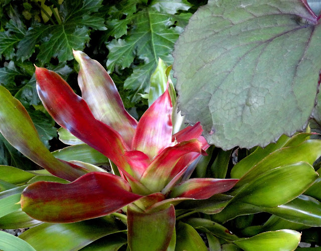 The Bromeliad was picked up at a private plant sale a few weeks back. Word went out that a local gardener was moving and needed to sell plants, garden art, and tools. I looked back through my photos to see if there was anything I had to have and remembered how taken I was with this plant...and it was there waiting for me, now it's mine. Score!
