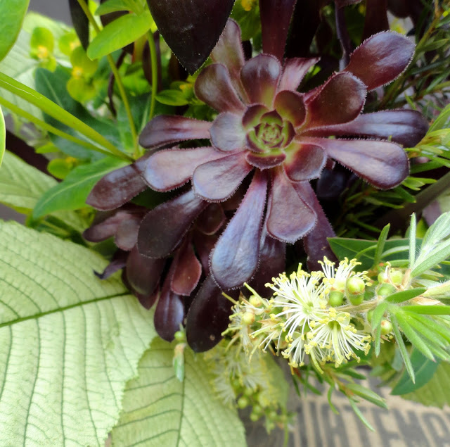 And here's my first stab at using the Aeonium in a new and different way (for me at least)...you may notice there's no A. 'Blackbeard' but don't worry, you'll see that one in the upcoming weeks...