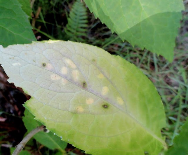 Cutting flowering branches I let a few drop to the ground intending on picking them up when I was done – that's when I saw the undersides of the leaves. Yuck!