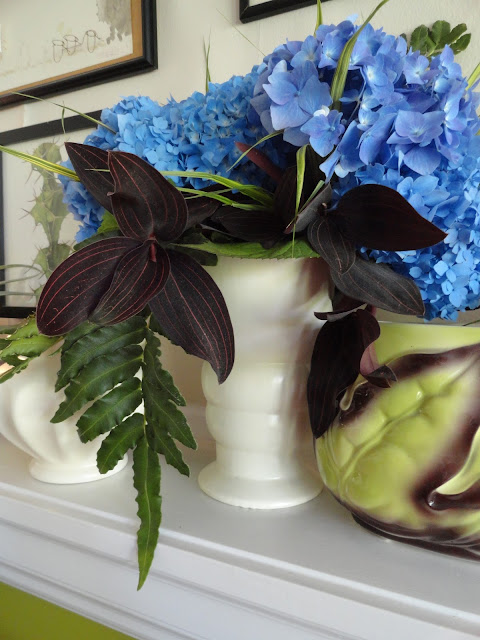 Joining them are a few fronds from a recently acquired Blechnum chilense. The stems were snapped part way down and rather than just toss 'em I worked them into the arrangement.