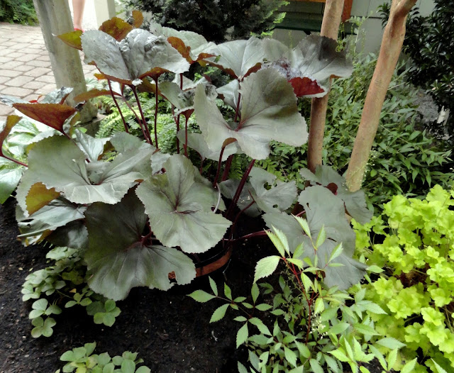 Another smart container choice in the Bebernes-Gawf garden, the Ligularia (aka slug salad) is planted in a container with a wide copper band around the top, which is sunk into the ground (copper is supposed to keep the slugs away).