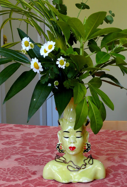On a table in her transformed garage (now a "garden room") were these little vases, smaller versions similar to my Polynesian head vase.