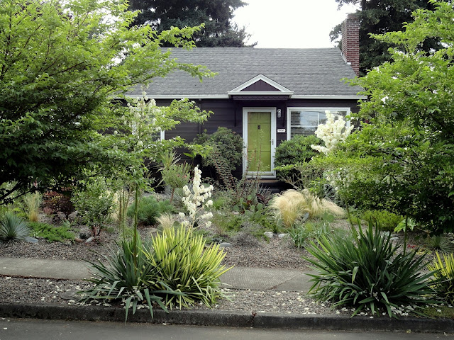 Front lawns are such an automatic default, even in “anything goes” Portland, Oregon, where nobody thinks it the slightest bit strange to see a front yard vegetable garden. Of course all that turf is allowed to go dormant in our dry summers, hence the descriptor “Portland Gold.” It’s so depressing to go for a walk on a lovely summer day and see blocks and blocks of crispy turf. I can quickly get myself all worked up thinking “Why don’t they want more? Why are they content with ugly dead grass?” But then I think back to how overwhelming it was for me, faced with that big public opportunity to fail, and it’s no wonder most people stick with the “easiest” answer…lawn. Which is why I wish I could place a copy of Pam Penick’s book “Lawn Gone! Low-maintenance, Sustainable, Attractive Alternatives for Your Yard” in every one of my neighbors hands, she breaks the process down and gives the reader everything they need to know to be successful.