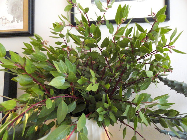 As you might have guessed I have a hard time throwing away any branches I trim from the garden. Why let them go to waste? So naturally the bits I trimmed from the Arctostaphylos denisflora ‘Harmony’ made it into a vase as well.